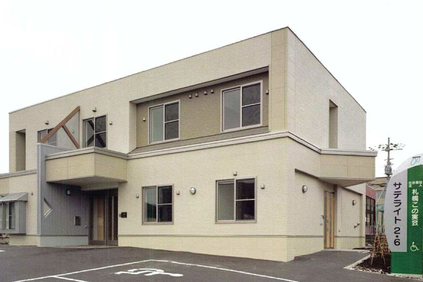 平成16年、手稲この実寮利用者を分寮・分棟の形で西区西野・平和地区に分散していく中で、地域生活支援の拠点の必要性を痛感しました。この地に出て20年以上の歳月が経ち、地域がなじんでくれたこともあり、平成17年自転車振興会の補助により「サテライト2・6」を建設し、平成18年1月開所しました。専属職員を配置して、1階は地域生活支援センター2階は6名が、本格的な地域生活練習の場として活用しました。このことにより、入所定員を50名から44名に減らしました。