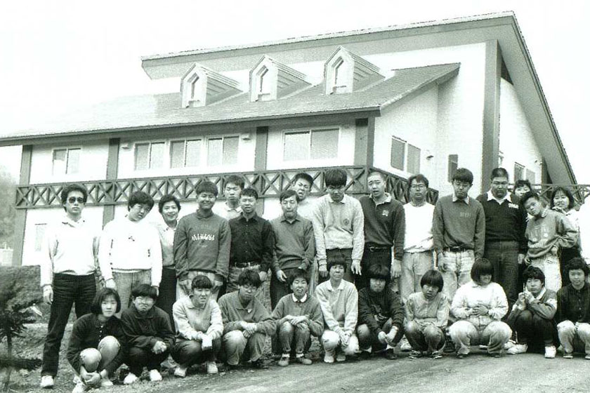 北海道の生活寮を参考とした国のグループホーム制度が平成元年4月スタートしましたが、就労者対応であるため、生活寮「さざ波寮」を「グルッペ101」と改名してグループホームとしました。当時この実会利用者の総数が101名であったことも命名の由来となりました。以後しばらくの間グループホームは番号で統一、生活寮は重度者の利用が可能なことから場所をかえ継続されました。同年7月、盤渓の山林2万坪が山科アキさんより寄贈。障害のある人たちの作業訓練の場として、子どもやお年寄りには森林浴やレクリェーションの場として福祉の役に立ててほしいとの意向でした。